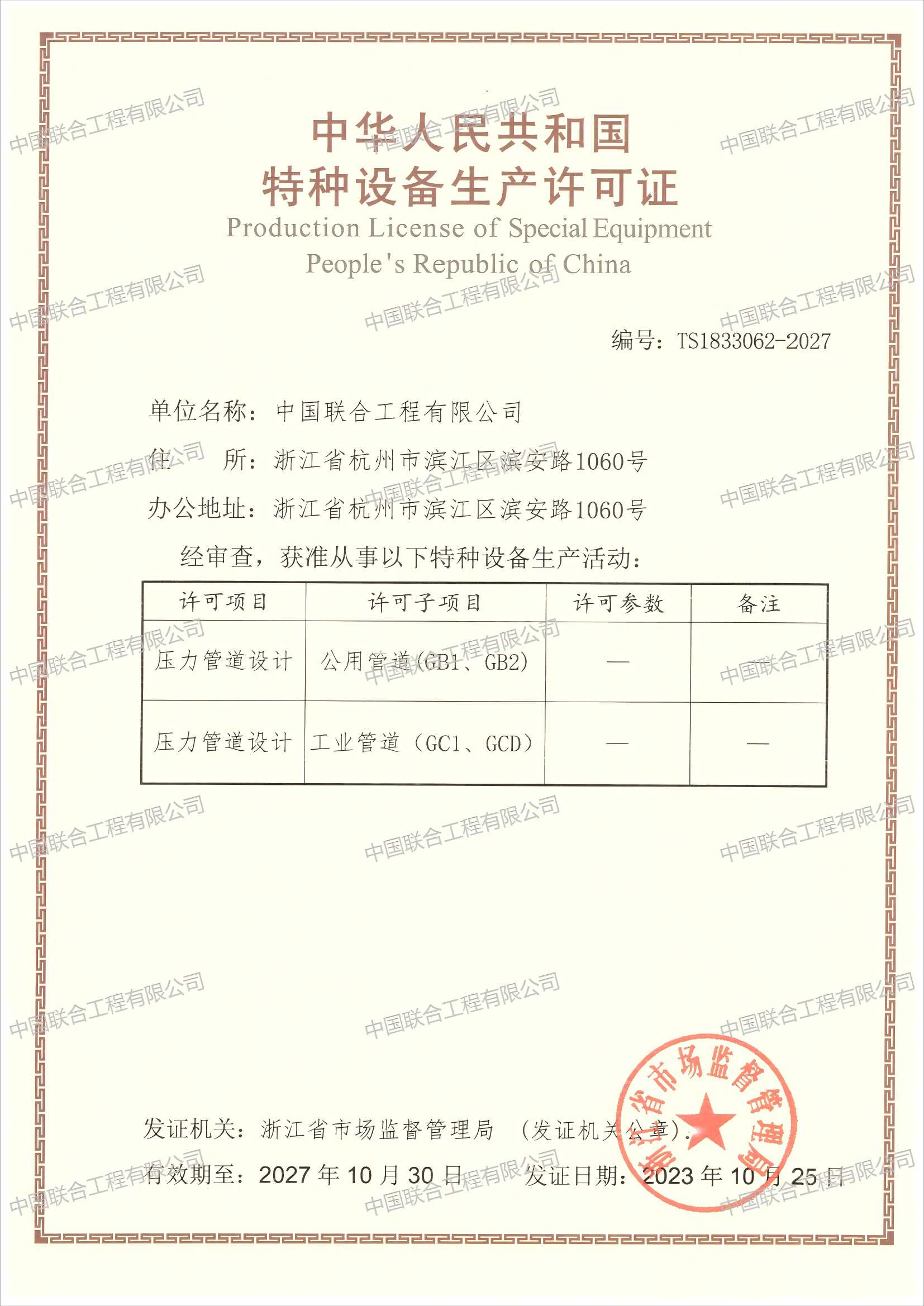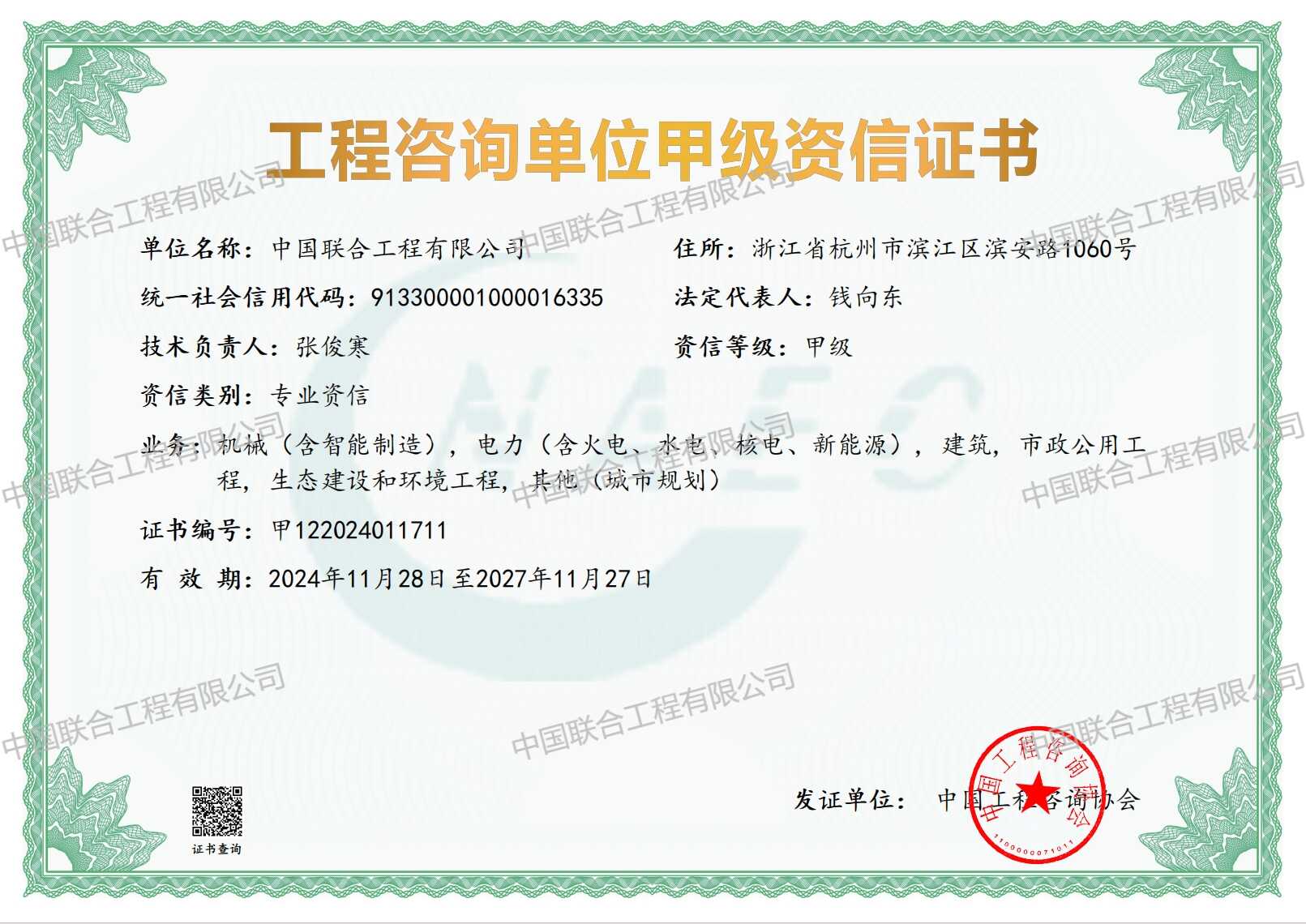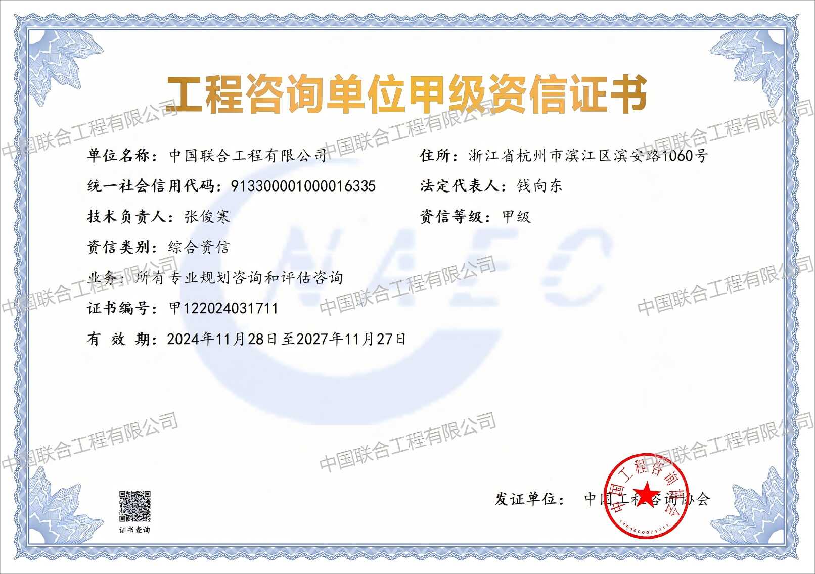 公司具有工程設計綜合甲級資質,具有多個專業的工程咨詢甲級資信和綜合資信,具有城鄉規劃編制甲級資質,具有工程勘察巖土工程專業甲級資質,具有施工圖審查、壓力管道等專項設計資質,具有建筑工程施工總承包壹級、工程監理綜合資質,具有直接對外經營權。是浙江省工程總承包第一批試點企業,是國家全過程工程咨詢試點企業。能為國內外業主提供各類工程的規劃、咨詢、勘察、設計、采購、設備成套、安裝、試車、非標設備研制、建筑施工、工程總承包、項目管理、項目代建、招標代理、建設監理等工程建設全方位、全過程服務。